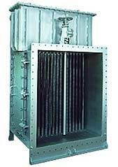 バイラーなどの廃熱回収用ヒートパイプ式ガス-液熱交換器です。排ガスの性状によっては発生する、結露による硫酸腐食の問題を解決した、小型・軽量な給水予熱器です